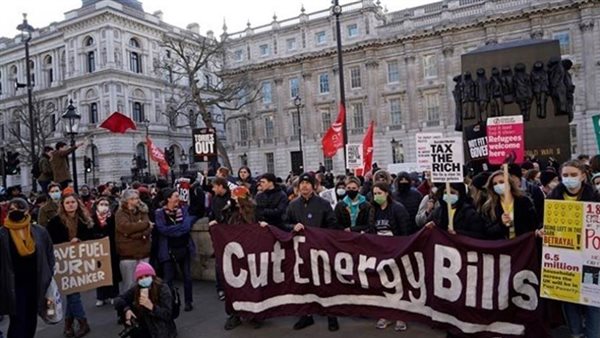 وسار المتظاهرون في لندن حاملين لافتة سوداء تدعو إلى "خفض فاتورة الطاقة"، فيما دعت لافتة أخرى إلى "تجميد الأسعار وليس الفقراء" في إشارة إلى ارتفاع كلفة الطاقة التي ترغم العائلات محدودة الدخل على عدم تدفئة منازلها.