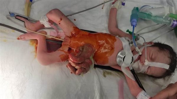 كما حضرت طفلة بعد أربع ساعات من ولادتها بوزن ٢ كيلو جرام تعاني من فتق خلقى بجدار البطن وتم على الفور التدخل الجراحى وتم إرجاع الأمعاء داخل البطن وإصلاح الفتق والطفلة بحالة جيدة.