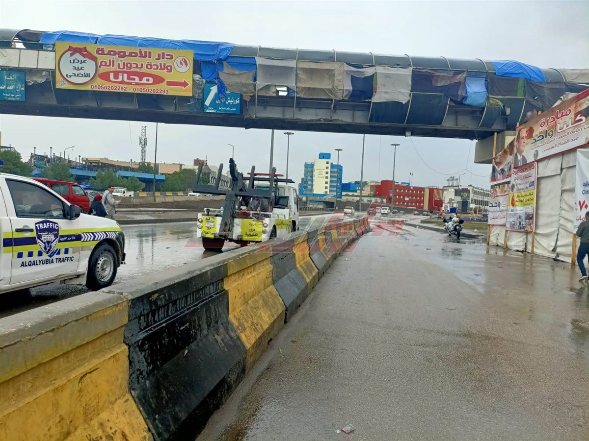 وانتشرت معدات شركة مياه الشرب والصرف الصحي بالقليوبية والبالغ عددها حوالى 250 معدة، بالشوارع والطرق السريعة والرئيسية والفرعية لسحب تجمعات المياه من الشوارع.