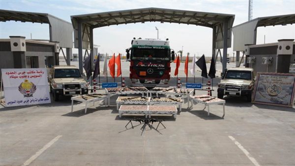 وأسفرت جهود عناصر التفتيش والكشف عن المهربات؛ عن ضبط عربة نقل مُحمل عليها مكعبات مياه وعدد من البراميل والتي عثر بداخلها على 19 بندقية آلية، و20 خزنة لبنادق آلية و4 بنادق آلية FN، و3 رشاشات متعددة، بالإضافة إلى نظارتين ميدان وتليسكوبين قناصة، كما تم ضبط كميات كبيرة من الذخائر بلغت 15 ألفا و627 ذخيرة أنواع.