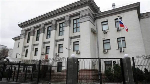 وأفاد مراسل الوكالة في وقت لاحق بأنه تم إنزال العلم الروسي من على مبنى السفارة في كييف.