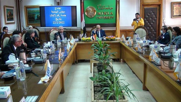 عقد مجلس جامعة المنيا اجتماعه الدوري، برئاسة الدكتور مصطفي عبد النبي عبد الرحمن رئيس الجامعة، وبحضور الدكتور عصام فرحات نائب رئيس الجامعة لشؤون التعليم والطلاب، وعمداء الكليات، ومدير مركز ضمان الجودة والاعتماد، والمدير التنفيذي للمعلومات، والمستشار القانوني، وأمين عام الجامعة، وبحضور أمين اتحاد طلاب الجامعة.