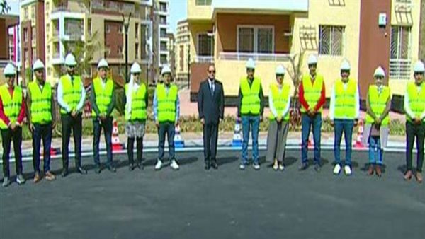 الرئيس السيسي يلتقط صورة تذكارية مع عمال مشروع جنة بـ6 أكتوبر