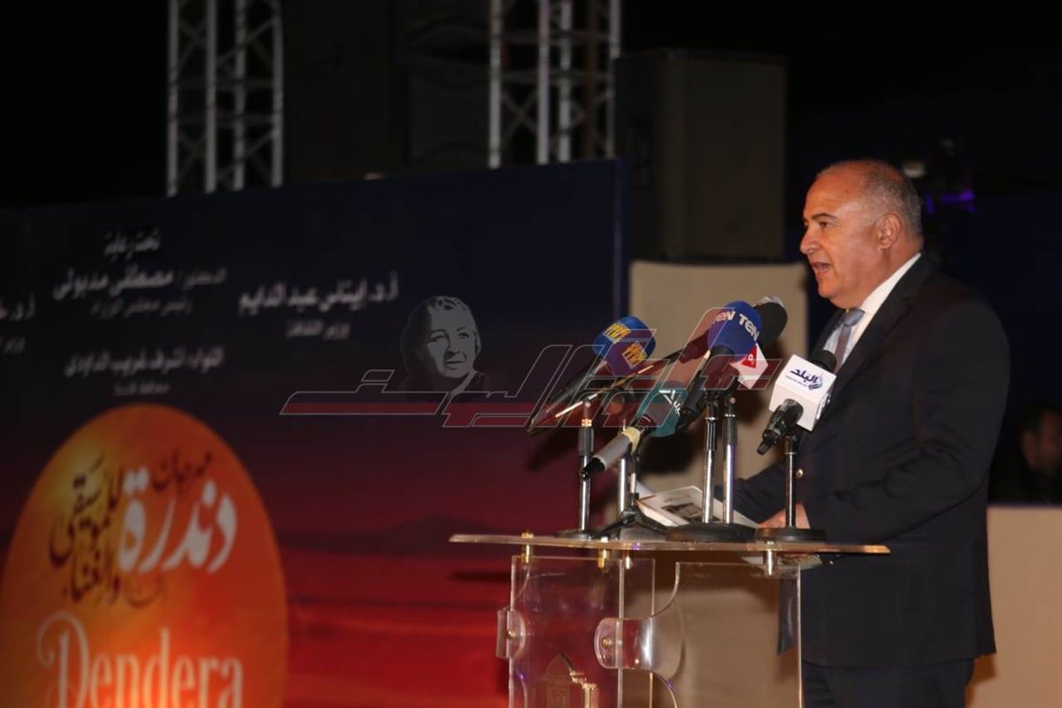 وقال الداودى، إن اليوم يتجدد اللقاء للمرة الثانية بعد توقف المهرجان العام الماضي بسبب كورونا، وأضاف أن المهرجان يعد عرسا ثقافيا وفنيا مبهرا يعكس إيمان الدولة بقيمة الفن والثقافة في تشكيل الوجدان، وبناء الإنسان وتحقيق العدالة الثقافية، ووجه الشكر للقيادة السياسية لإيمانها بضرورة تنفيذ مثل هذه الفعاليات الثقافية لمواجهة الأفكار المتطرفة والهدامة وحماية أبنائنا منها، وثمن دور وزارة الثقافة في تحقيق حلم أبناء المحافظة في تقديم الخدمات الثقافية، التي كانوا يحلمون بها مثل هذا المهرجان ومعارض الكتب وغيرها، كما قدم الشكر لوزيرة الثقافة على الاستجابة لطلبه السابق بأن يقام الدورة الثانية من مهرجان دندرة، تزامنا مع احتفالات محافظة قنا بعيدها القومي.