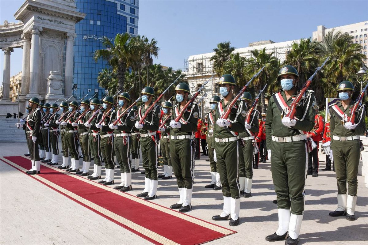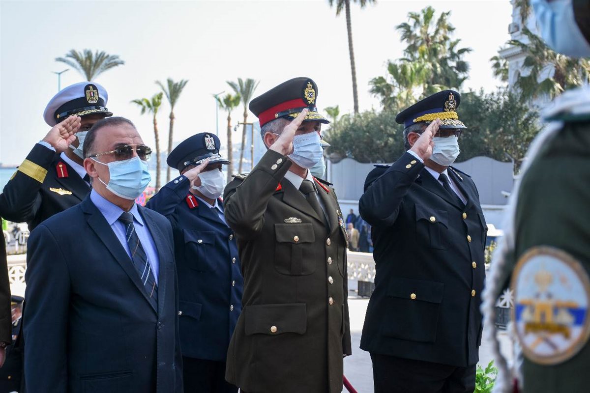 محافظ الإسكندرية وقائد المنطقة الشمالية يضعان إكليل الزهور على النصب التذكاري للشهداء في يوم الشهيد