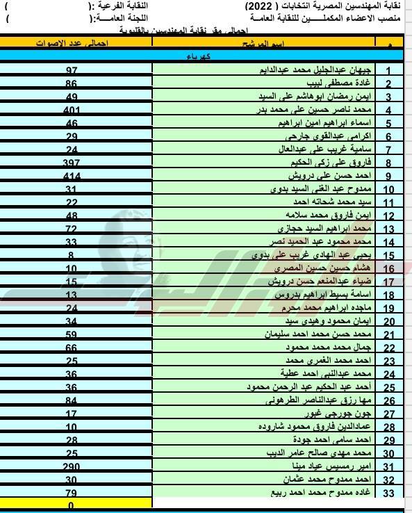 ننشر نتائج المرحلة الثانية لانتخابات نقابة المهندسين بالقليوبية