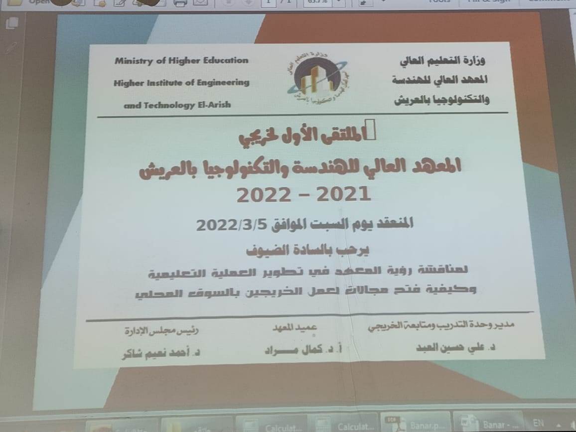 تنظيم الملتقى الأول لخريجى المعهد العالى للهندسة والتكنولوجيا بالعريش
