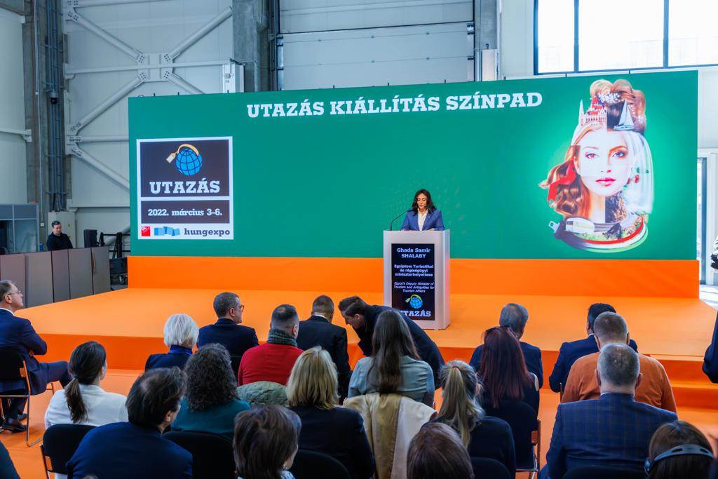 وكانا نائب الوزير وبيتر سيارتو وزير الخارجية والتجارة المجرى قد افتتحا المعرض والذي تشارك فيه مصر كضيف شرف، حيث ألقت نائب الوزير كلمة نقلت خلالها تحيات الدكتور خالد العناني وزير السياحة والآثار وخالص تمنياته بالنجاح للمعرض الذي يعد فرصة جيدة للترويج للمقصد السياحي المصري، وإبراز مقوماته الفريدة، بما يساهم فى زيادة الحركة السياحية الوافدة من المجر إلى مصر.