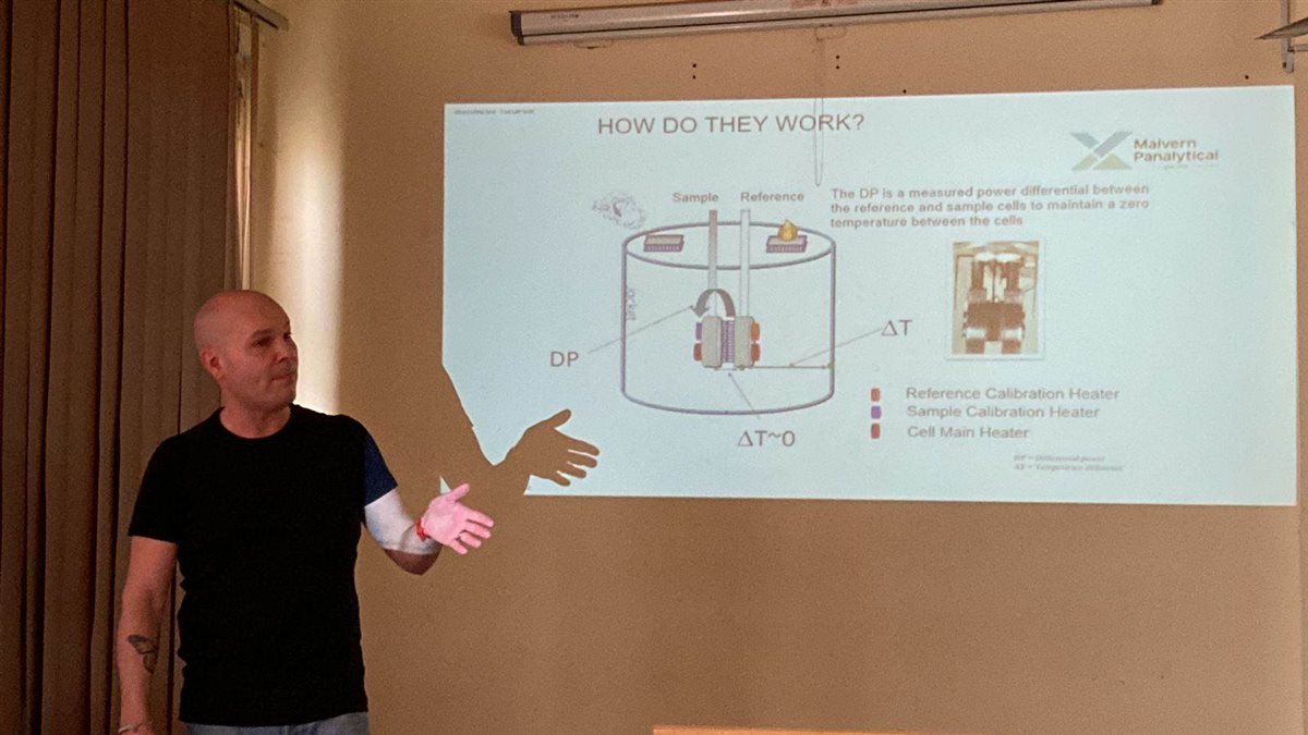 واستضافت كلية الصيدلة بجامعة حلوان الدكتور بيتر جيمسون من السويد لمدة أسبوع لعقد ورشة عمل تدريبية للباحثين بالكلية للتعرف علي إمكانيات الجهاز والتدريب على تشغيله وتحليل نتائجه.