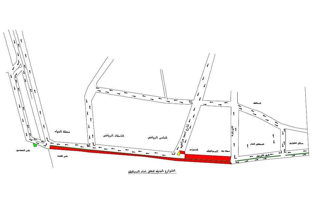 وبناء ً عليه سيتم غلق الحارتين بطريق كورنيش النيل في المسافة من شارع 17 حتى شارع أحمد عرابي " أمام ديوان عام المحافظة" ، وغلق حارة واحدة في المسافة من شارع أحمد عرابي حتى نادي القضاة ، مع توفير مسارات مرروية بديلة ، والتي ستكون على النحو التالي: