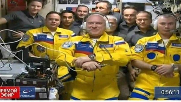 ووفقًا للمعلومات التي بثتها قناة "RT " الروسية على" تليجرام"، رد دميتري روجوزين، رئيس روسكوزموس، مؤخرًا على الأخبار القائلة بأن "رواد الفضاء الروس يرتدون ألوان العلم الأوكراني" تسببوا في إثارة ضجة في الرأي العام، مشيرًا إلى مزيج الأزرق والأصفر لمركب إطلاق "Soyuz-2" وشعار جامعة موسكو الحكومية التقنية “بومان” للتأكيد على أن اختيار اللون للزي لا علاقة له بلون الأوكراني العلم كما تكهنت وسائل الإعلام الغربية.