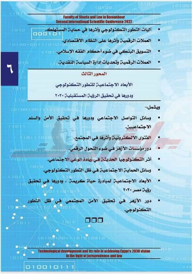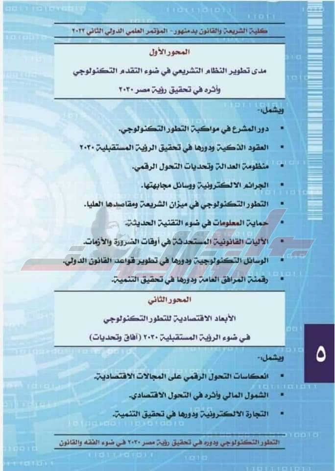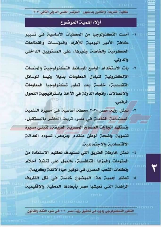 وتغطى البحوث العلمية وأوراق العمل المقدمة إلى إدارة المؤتمر العديد من الجوانب القانونية والاقتصادية والاجتماعية للتحول الرقمي في ضوء الضوابط الفقهية والقانونية وتحقيق رؤية مصر 2030.