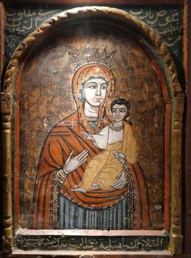 متحف آثار الإسماعيلية: يعرض أيقونة من الخشب، تمثل السيدة مريم العذراء وهي تحمل السيد المسيح.