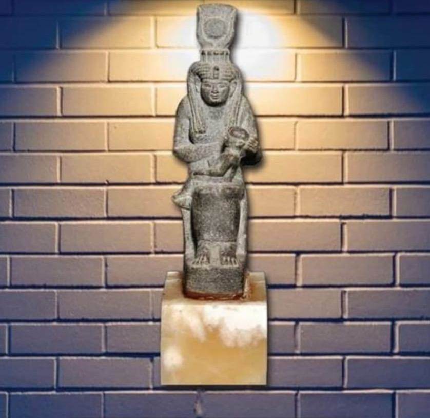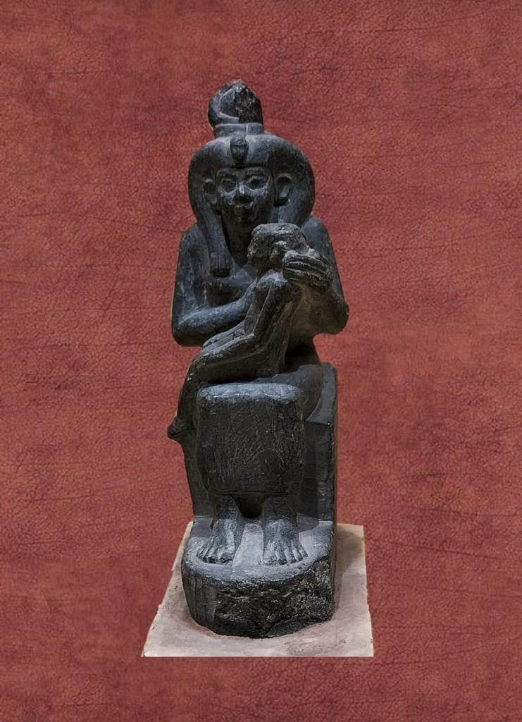 وتتنوع مادة صنع تلك التماثيل بين الخشبي والشست والنحاس والبرونز، لما لها من أهمية خاصة؛ فهي إحدى الشخصيات الرئيسية للديانة المصرية القديمة، ويعني اسمها "كرسي العرش" وهي تمثل صورة الأم المثالية والزوجة الوفية، كما أنها معبودة الأمومة والطفولة، وغالبًا ما تظهر وهي تحمل حورس في حجرها.