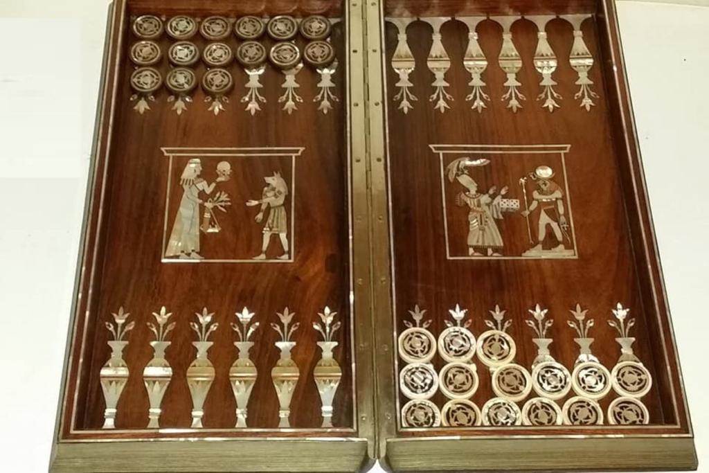 متحف ركن فاروق بحلوان: يعرض طاولة من الخشب على الطراز الفرعوني، من الخارج على شكل كتاب، وتحتوي على نردين من الصدف وأحجار اللعبة من العاج والأبانوس، من القرن 20 الميلادي.