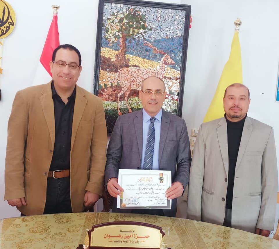 ومن جهة أخرى.. كرم حمزة رضوان وكيل الوزارة مصطفى على مصطفى غيط موجه أول فني بإدارة التطوير التكنولوجي لبلوغه السن القانونية للتقاعد.