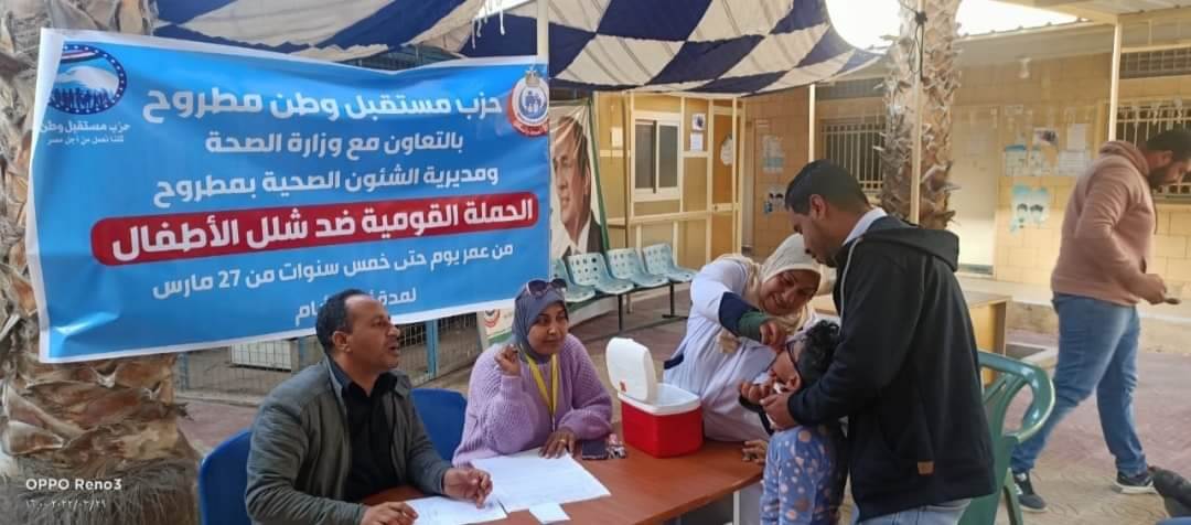 وفي محافظة مطروح، انطلقت حملة موسعة للتطعيم ضد مرض شلل الأطفال تجوب مراكز وقري ونجوع المحافظة، وذلك من خلال توفير أعداد كبيرة من السيارات وفرق عمل مساعدة للأطقم الطبية ليقوموا بعملهم علي أكمل وجه خدمة لأهالي المحافظة، لافتة إلي أن الحملة امتازت بإنها متنقلة ومركزية مما أتاح لها تقديم خدمة التطعيم لغالبية الأطفال المستهدفين.