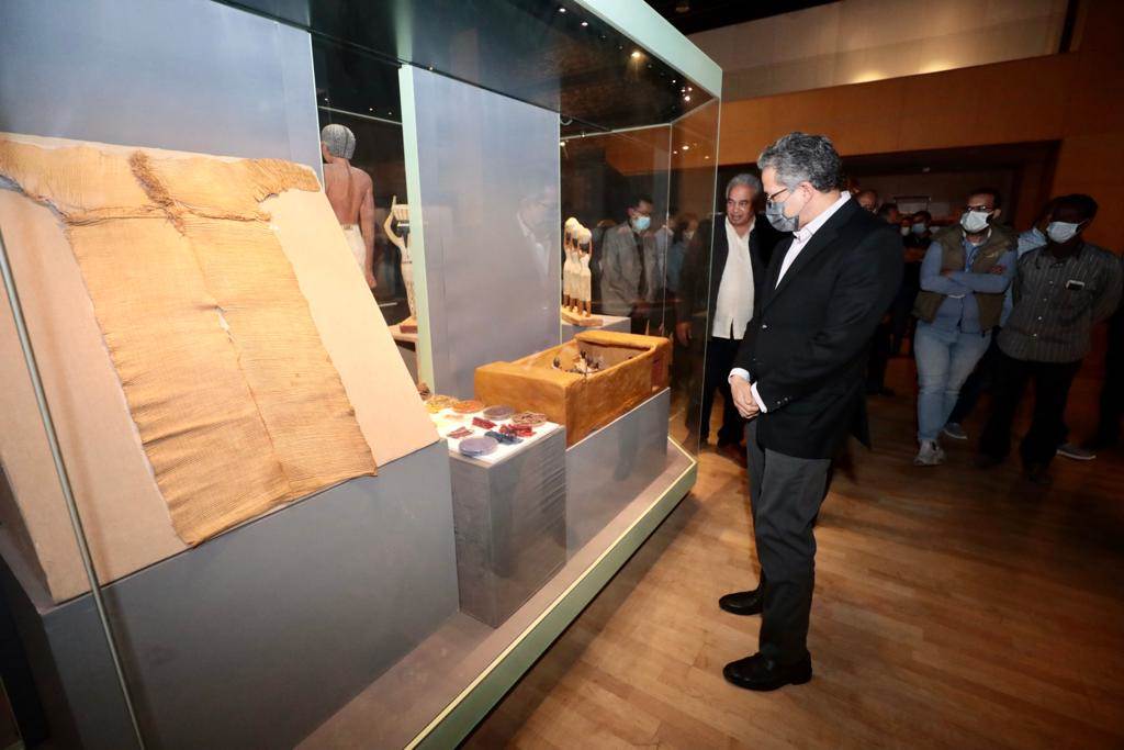 ورافق الوزير خلال الجولة الدكتور أحمد غنيم الرئيس التنفيذي لهيئة المتحف، والدكتور مصطفى وزيري الأمين العام للمجلس الأعلى للآثار، والدكتور محمود مبروك مستشار وزير السياحة والآثار للعرض المتحفي، والدكتور أسامة عبدالوارث عضو لجنة سيناريو العرض ومؤمن عثمان رئيس قطاع المتاحف.