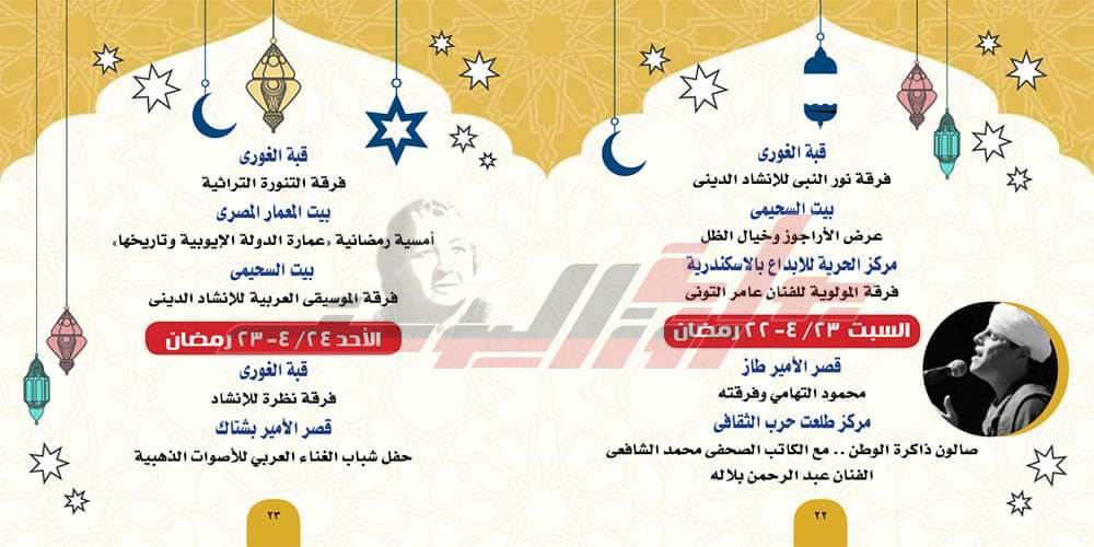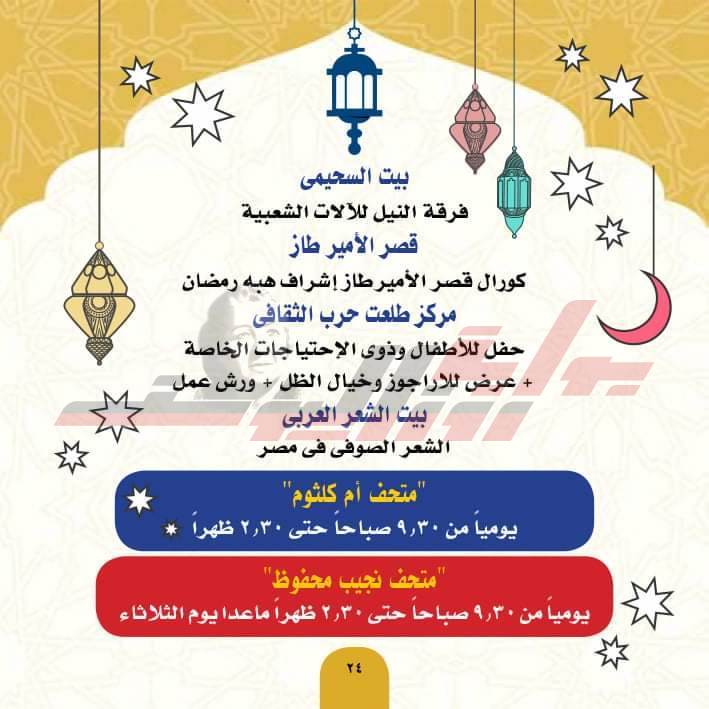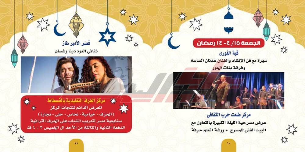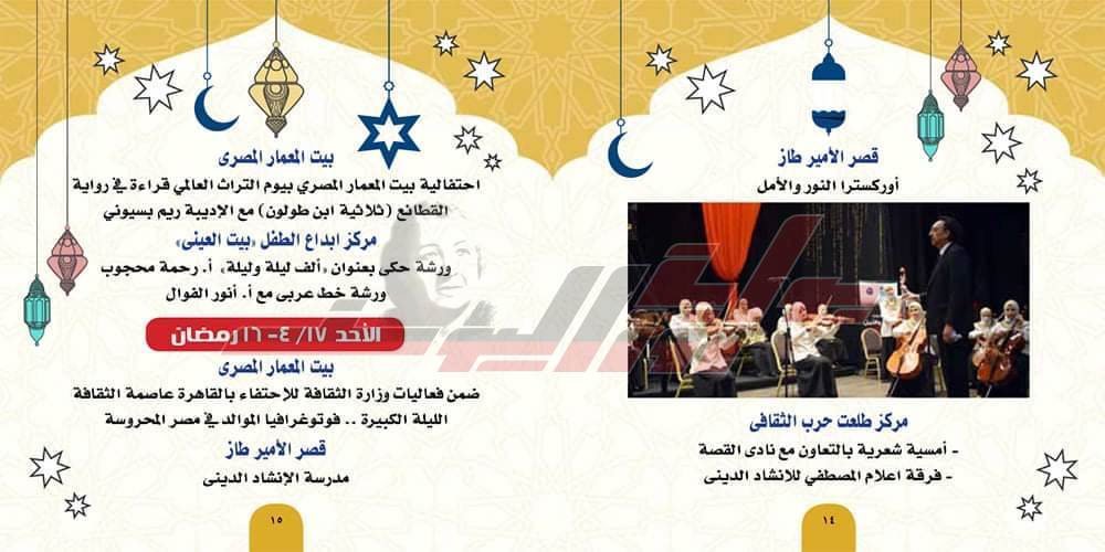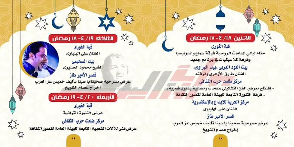 ننشر تفاصيل برنامج فعاليات رمضان بمراكز الإبداع الفنية بـ«التنمية الثقافية»