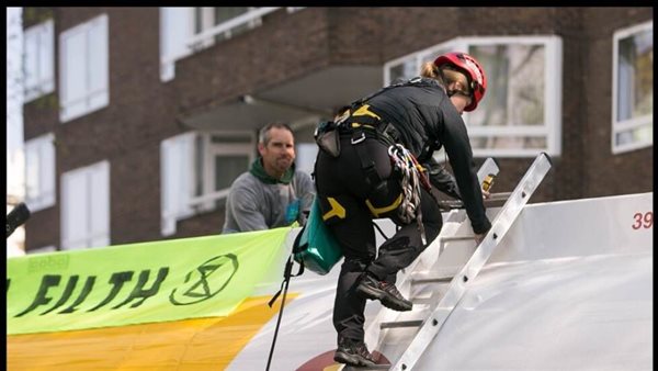 وكان احتجاج ناقلة النفط جزءا من تظاهرات حاشدة للمناخ نظمت الجمعة وشهدت قيام مئات النشطاء بإغلاق أربعة جسور رئيسية في أنحاء العاصمة البريطانية، ما تسبب في اضطراب حركة السير بأرجاء وسط لندن.