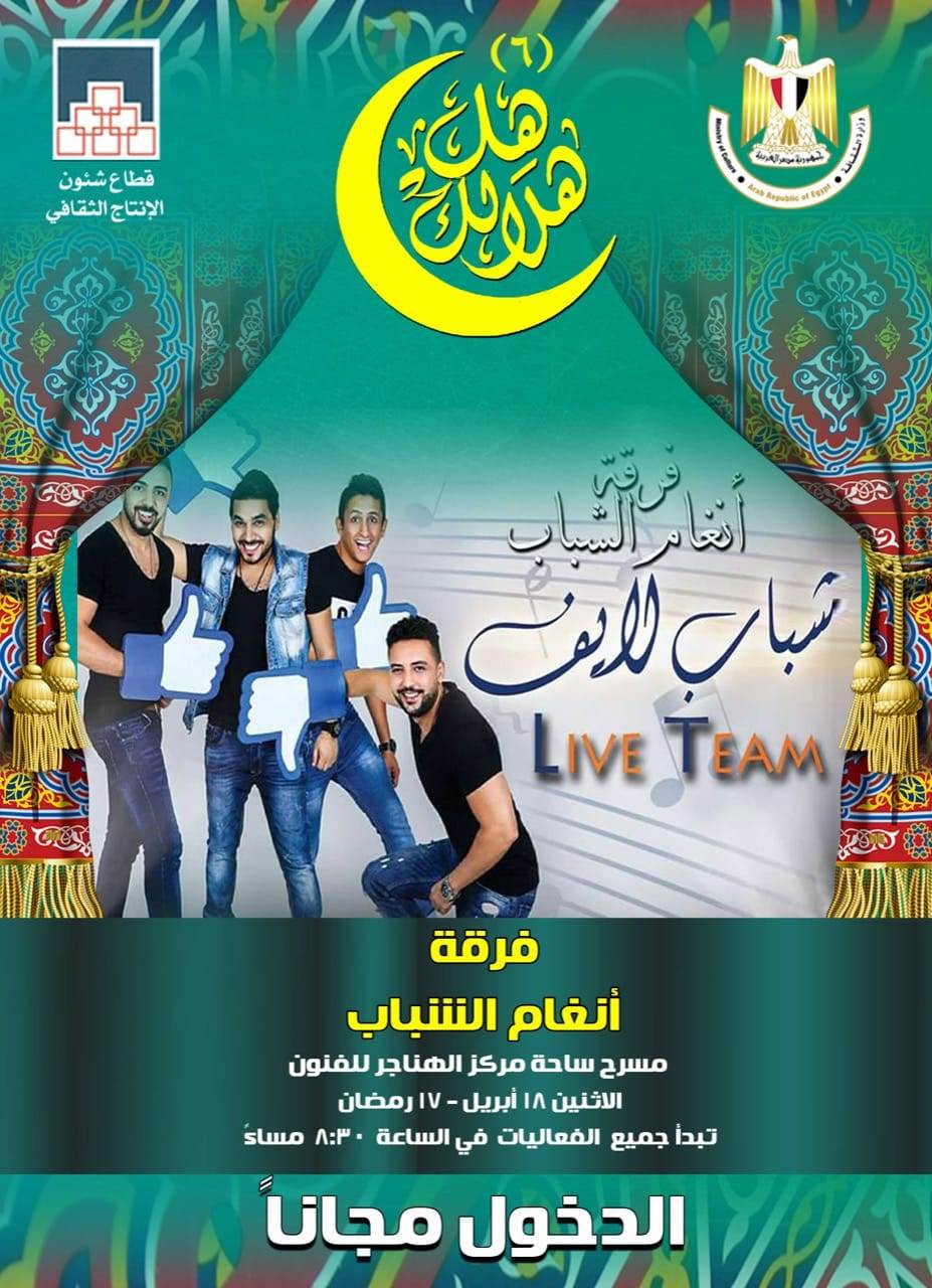 "أنغام الشباب" و"الحفني لأصحاب الهمم" بالليلة الثامنة لـ "هل هلالك".. غدا