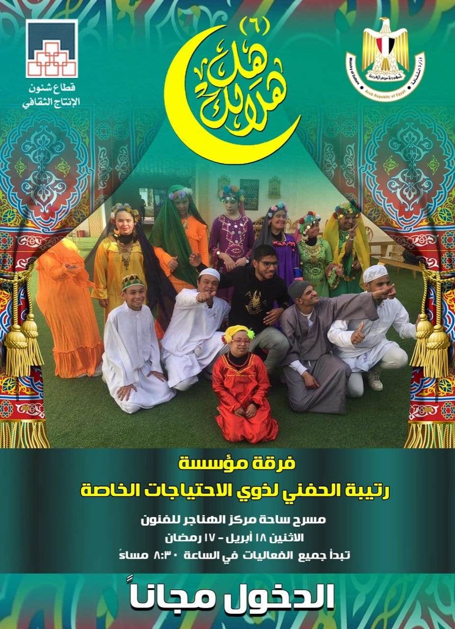 كما تقدم فرقة مؤسسة رتيبة الحفنى لذوى القدرات الخاصة، باقة من الفقرات الغنائية من أجمل أغانى شهر رمضان، تحت إشراف الأستاذة علا عبيد رئيس المؤسسة .