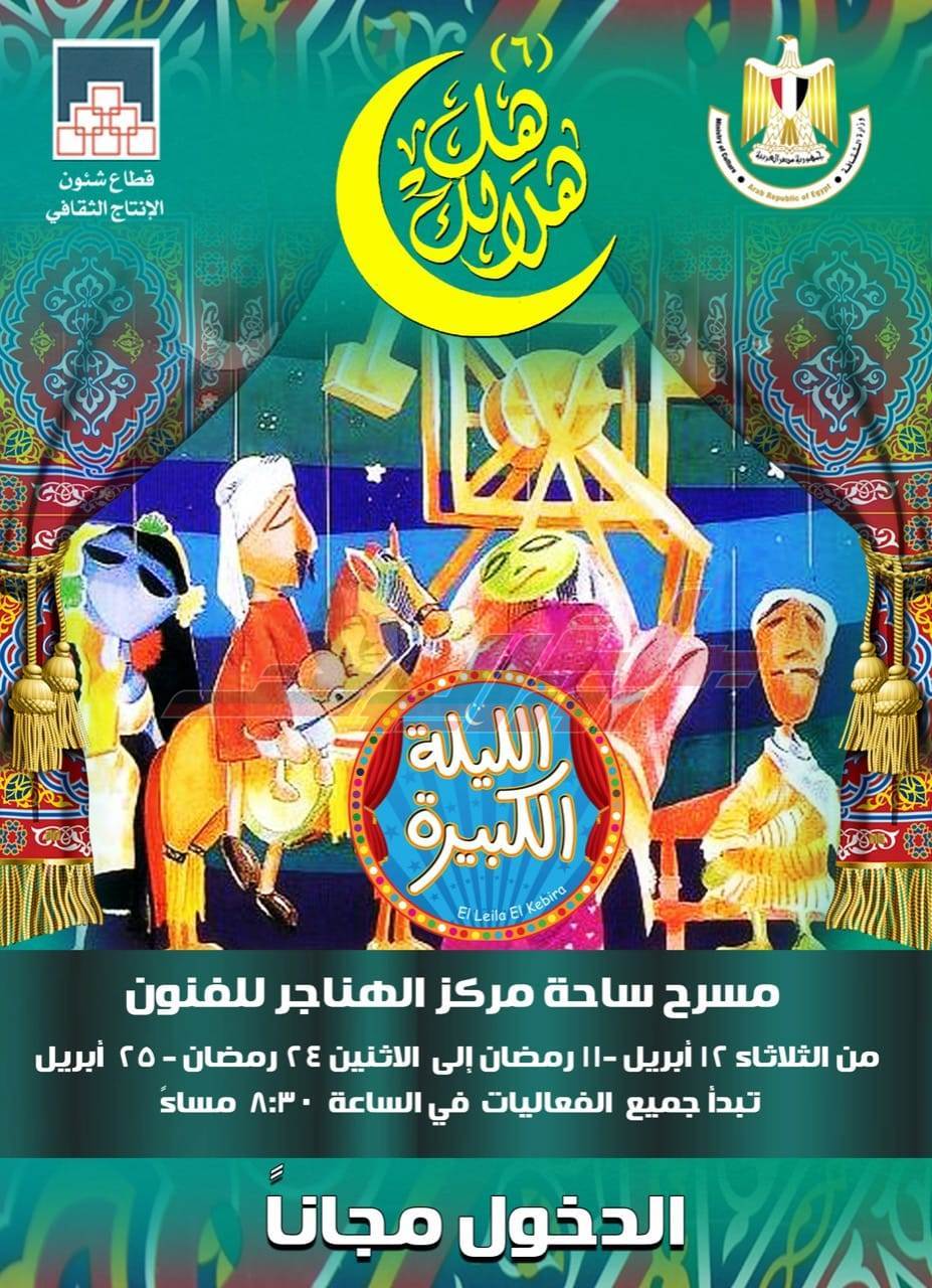 ويستمتع الجمهور كل ليلة، برائعة الشاعر صلاح جاهين، والموسيقار سيد مكاوى، أوبريت "الليلة الكبيرة"، الذي يقدمه البيت الفنى للمسرح برئاسة المخرج إسماعيل مختار، من إنتاج فرقة مسرح القاهرة للعرائس برئاسة الفنان محمد نور، ديكور مصطفى كامل، تصميم عرائس للدكتور ناجى شاكر، وإخراج صلاح السقا .
