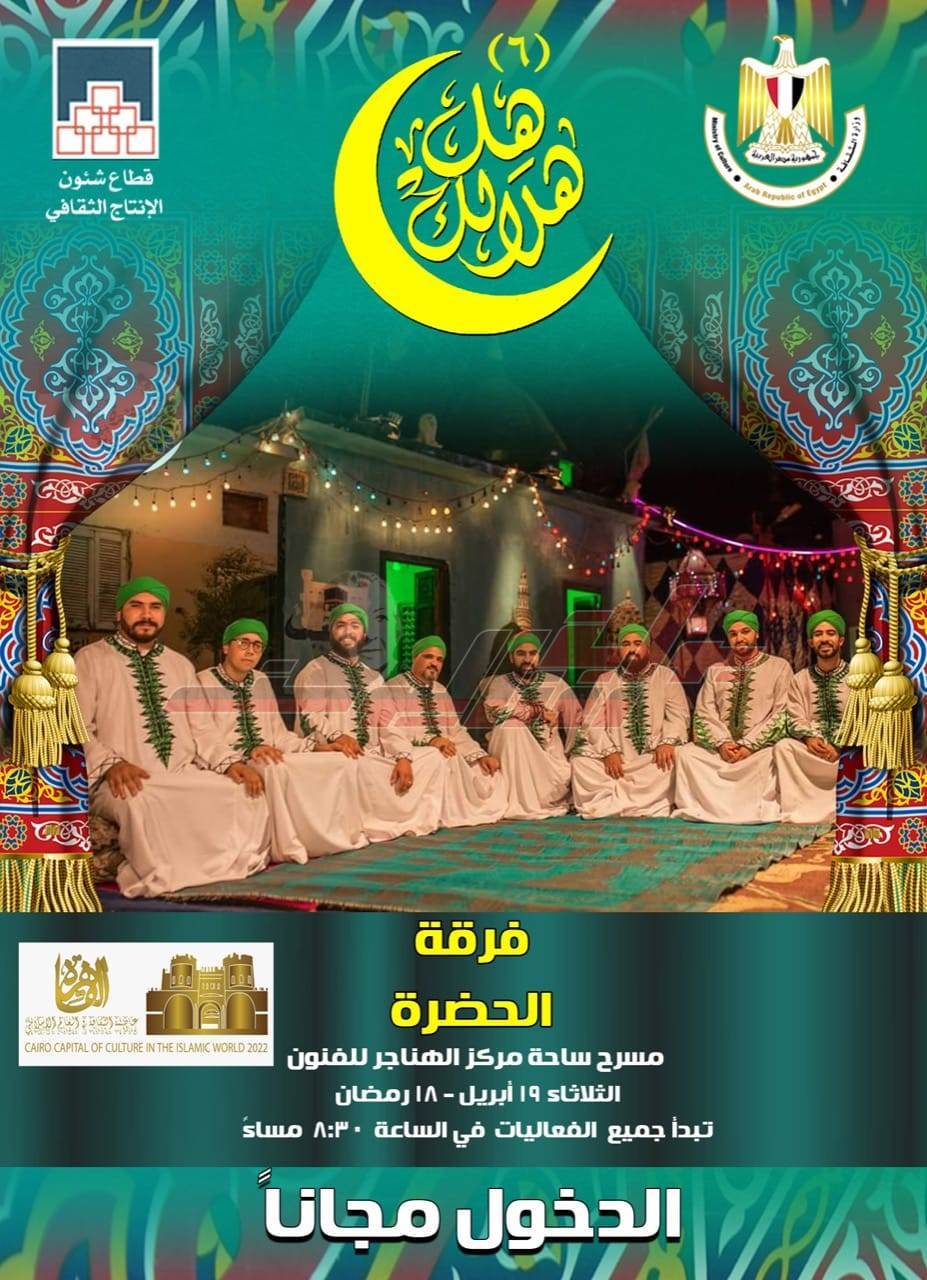 فرقة "الحضرة" و"الليلة الكبيرة" في الليلة التاسعة لـ "هل هلالك".. غدًا