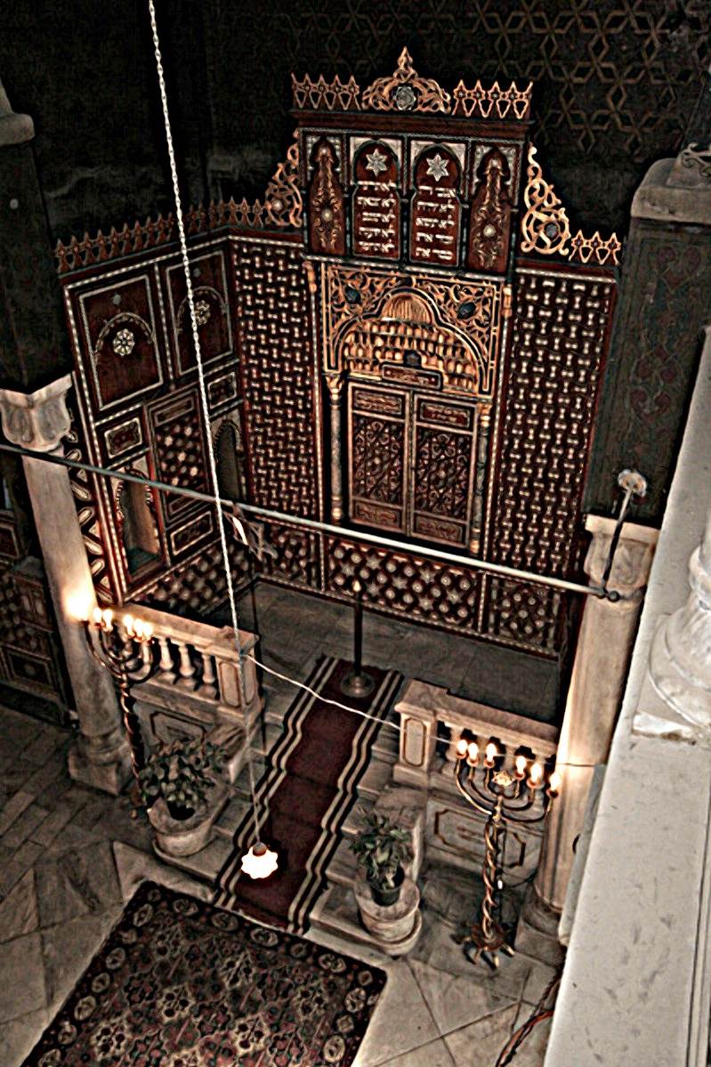 ويتكون المعبد من طابقين كبقية المعابد اليهودية، يخصص الطابق الأول للرجال والثاني للنساء، ويوجد في الوسط منصة الوعظ حيث تقرأ التوراة، وفي الشرق يوجد على منصة عالية تابوت العهد، الذي يحتوي على لفائف التوراة، يحجبه باب منقوش وستار من الداخل.