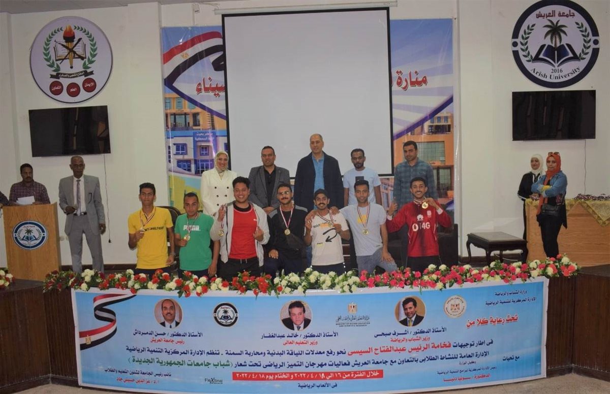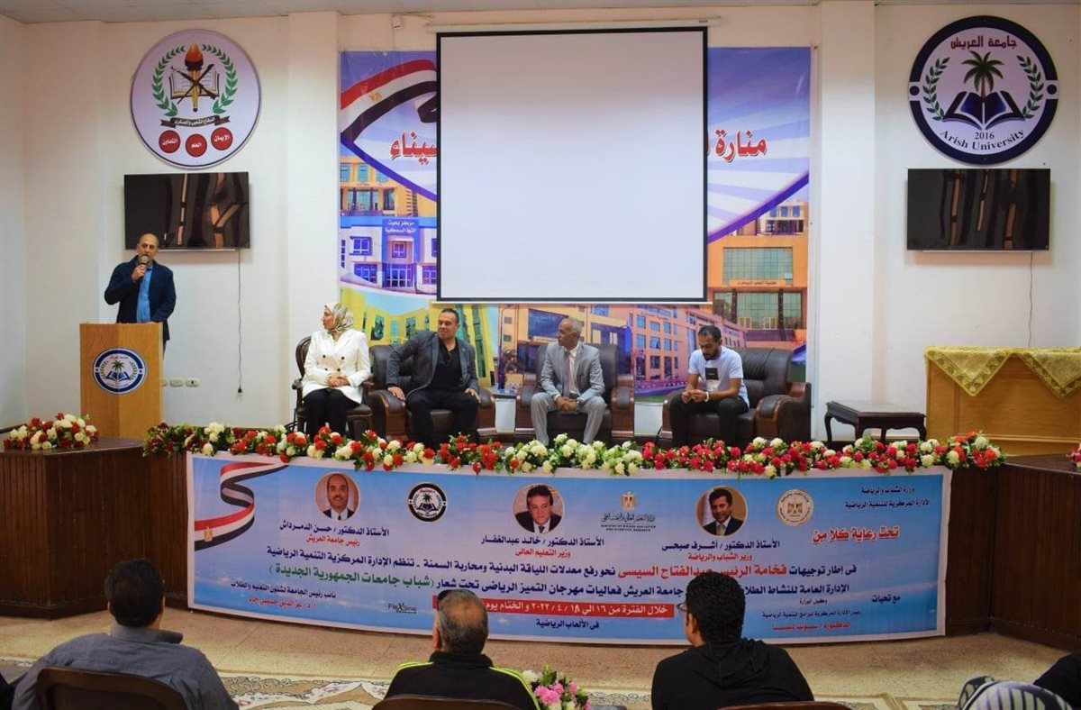 شاركت جامعة العريش في أنشطة وفاعليات النسخة الرابعة للمهرجان الرياضى للجامعات المصرية (مهرجان التميز الرياضى)، والذي أقيم تحت شعار: "شباب جامعات الجمهورية الجديدة"خلال الفترة من ١٦ إلى ١٨ إبريل الجارى تحت رعاية الدكتور أشرف صبحى وزير الشباب والرياضة والدكتور خالد عبدالغفار وزير التعليم العالى والبحث العلمى والدكتور حسن عبدالمنعم الدمرداش رئيس الجامعة، وإشراف الدكتور عز الدين حسينى سليمان نائب رئيس الجامعة لشؤون التعليم والطلاب، وبالتعاون مع وزارة الشباب والرياضة.