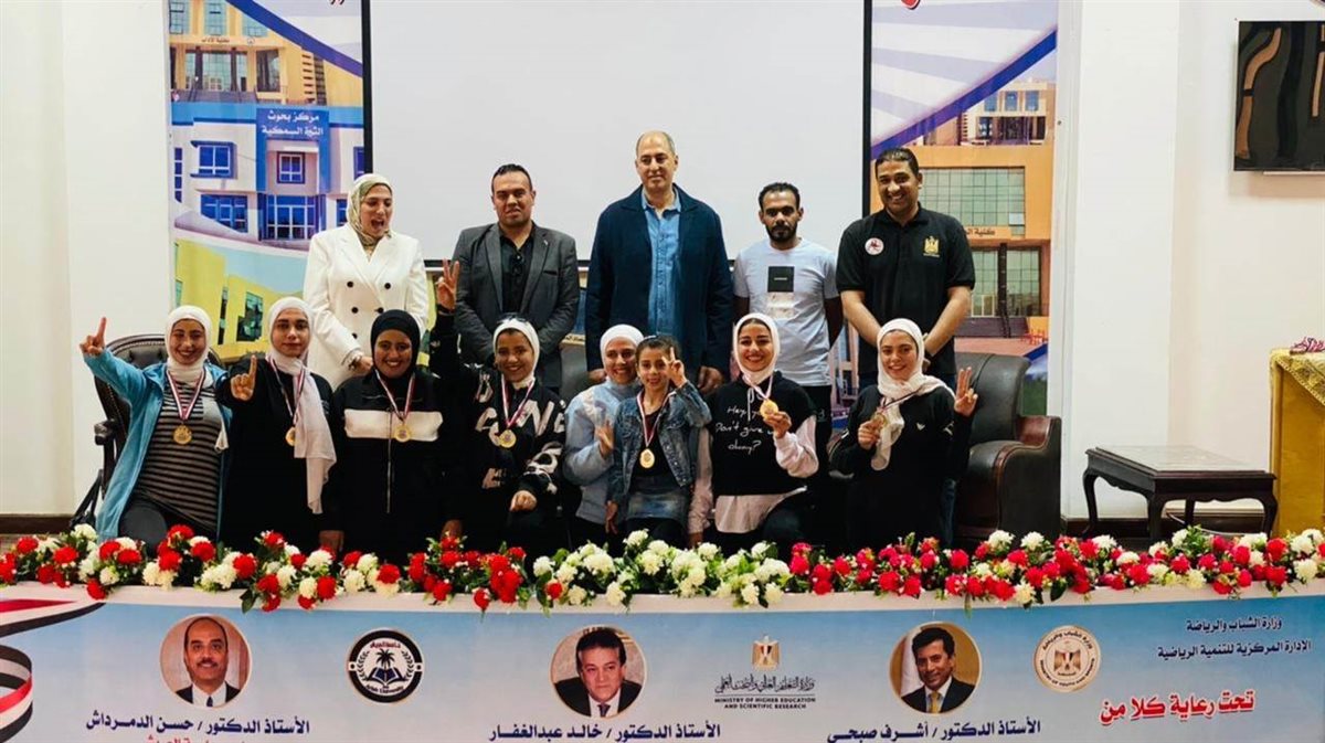 وأكد بيان لرئيس الجامعة أن فاعليات النسخة الرابعة للمهرجان الرياضى للجامعات المصرية (مهرجان التميز الرياضى) قد انتهت بحضور محمد عبدالسميع وإسلام عاطف من المسؤولين عن المهرجان بوزارة الشباب والرياضة، وتحت إشراف منسقى الأنشطة الطلابية بالجامعة الدكتور محمد عبدالمهدى البكرى والدكتورة هدير حسنى عبدالمقصود وحسام نعمان محمد مدير الإدارة العامة لرعاية الطلاب بالجامعة، وقد جرت المنافسات بين كليات الجامعة في: كرة اليد، كرة القدم، الكرة الطائرة (من الألعاب الجماعية)، تنس الطاولة والجودو (من الألعاب الفردية) بالإضافة إلى الألعاب الترويحية.. حيث استعانت الجامعة بأعضاء هيئة التدريس والهيئة المعاونة بكلية التربية الرياضية في التنظيم والتحكيم وإدارة المباريات، وكانت نتائج المركز الأول في كرة القدم "بنين" لكلية التجارة و"بنات" لكلية التربية الرياضية، وفى الكرة الطائرة "بنين” و"بنات" لكلية التربية الرياضية، وكرة اليد "بنين" و "بنات" لكلية التربية الرياضية، تنس الطاولة "بنات" فازت بالمركز الأول الطالبة يارا فوزى شعبان من كلية التربية الرياضية .. بينما تنس الطاولة " بنين " فاز به الطالب عبد الرحمن محمد حسين من كلية التجارة، وفى الجودو "بنات" فازت بالمركز الأول الطالبة نهال عبدالقادر من كلية التربية الرياضية.. بينما البنين فاز به الطالب خالد أشرف من كلية التربية الرياضية، وفى الألعاب الترويحية "بنات" فازت بها كلية التربية الرياضية.. بينما "بنين" ففازت بها كلية التجارة .