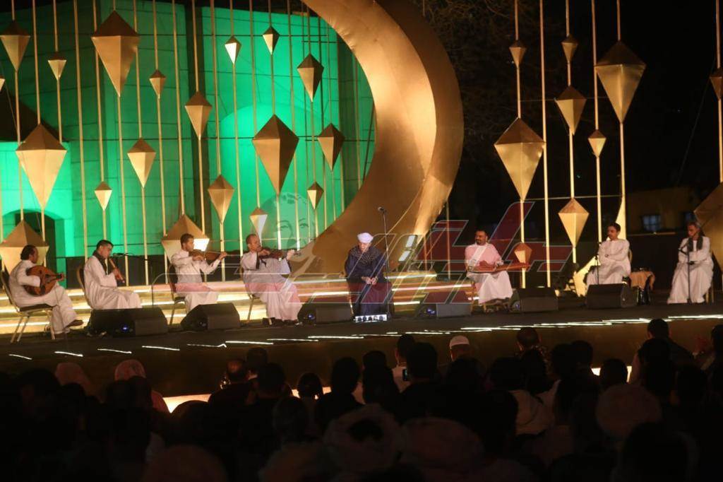 على مسرح النافورة استقبل الحضور من مختلف المحافظات والفئات العمرية بحفاوة بالغة الشيخ ياسين التهامي "شيخ المنشدين"، الذي قدم مناجاة مع الله وصنع أجواء روحانية سمت بالوجدان وارتقت بالمشاعر، حيث أنشد عدداً من ابيات الاشعار الصوفية والتراثية وقصائد المديح النبوى والابتهالات وتفاعل معها الحضور.
