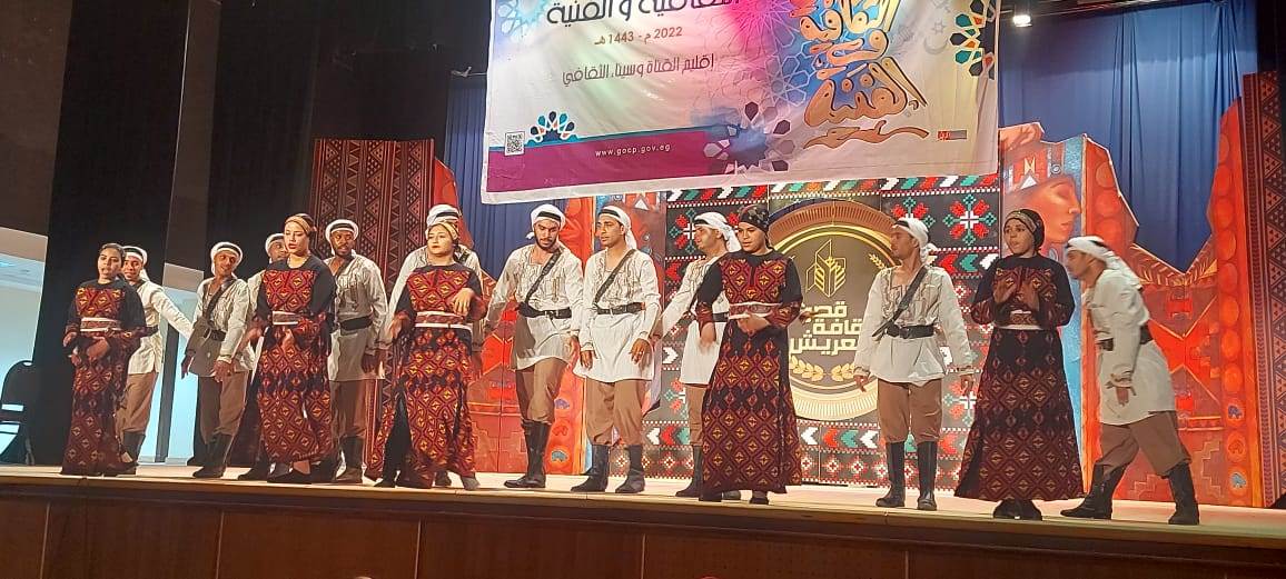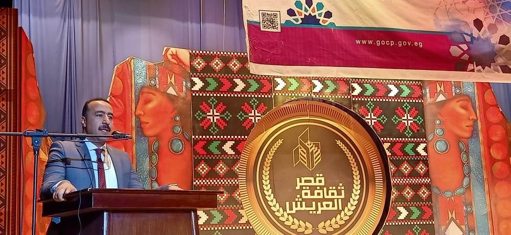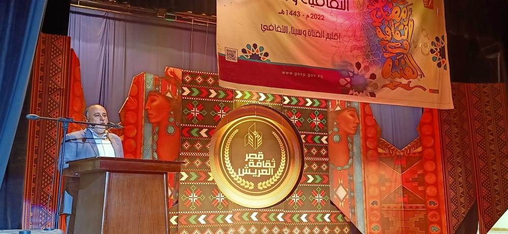 ثم اتجه الحضور الي مسرح قصر ثقافة العريش، حيث بدا العرس الثقافي بالسلام الوطني، والذي قدمه الدكتور والأديب شعيب خلف مدير عام الإقليم.