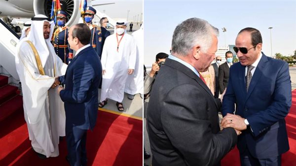 الرئيس السيسي يستقبل ملك الأردن وولي عهد أبوظبي بمطار القاهرة