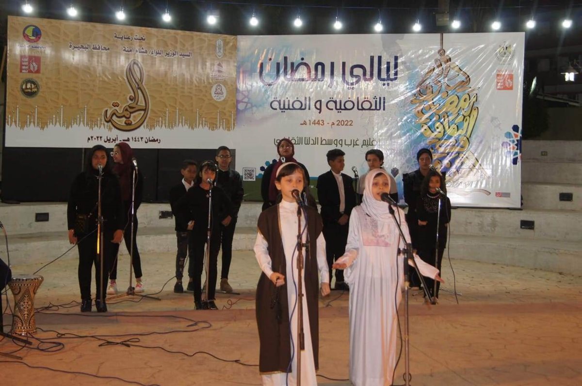 في إطار احتفالات المحافظة بشهر رمضان المعظم، وتحت رعاية اللواء هشام آمنة محافظ البحيرة، قدمت مكتبة مصر العامة بدمنهور مساء أمس عرضا فنيا لفريق كورال أطفال "قصر الطفل” بالتعاون مع مديرية الثقافة بالبحيرة ضمن فعاليات ليالي رمضان الثقافية.