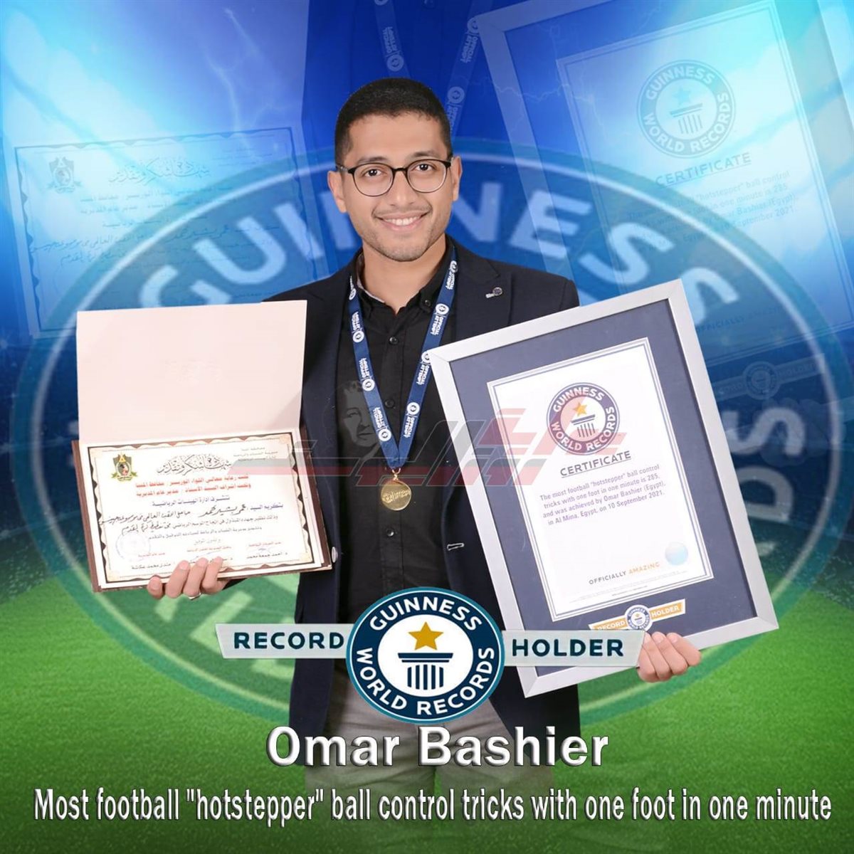 تمكن الكابتن عمر بشير ابن محافظة المنيا من دخول موسوعة جينيس للأرقام القياسية العالمية في مهارة تنطيط كرة القدم بباطن أسفل القدم محطما الرقم القياسي العالمي السابق.