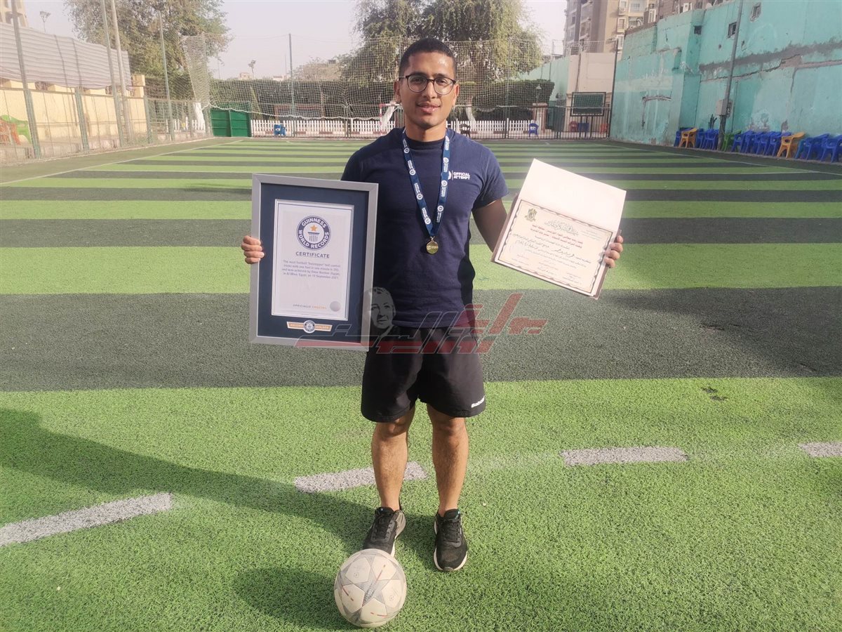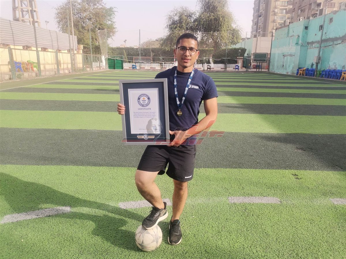بعد كسره الرقم العالمي.. مدرب كرة قدم بالمنيا يدخل موسوعة جينيس في مهارات الكرة "صور"