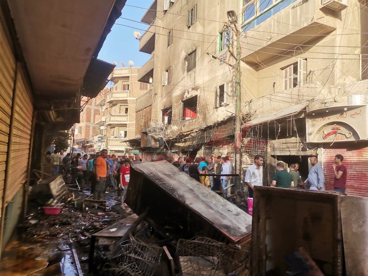 لجنة لحصر خسائر حريق محلات شبين القتاطر و10 آلاف تعويض لكل محل