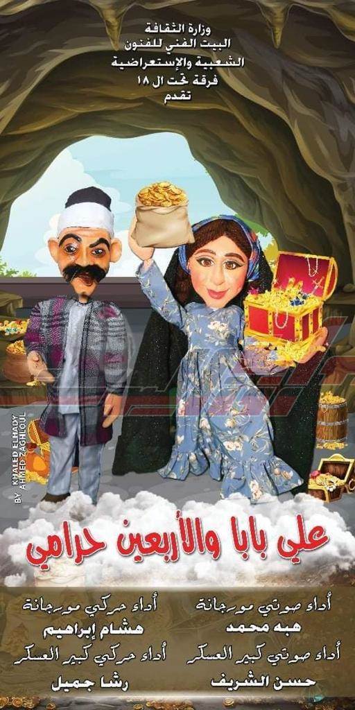 الى جانب عرض عرائس الماريونيت "علي بابا والأربعين حرامي" فى الثامنة مساء بقاعة صلاح جاهين بمسرح البالون بالعجوزة طوال أيام عيد الفطر المبارك من إنتاج فرقة تحت 18، بقيادة مدير عام الفرقة المخرج عبدالمنعم محمد ويقدمه نجوم الفرقة، أشعار محمد الزناتي، الحان كريم صفوت، توزيع موسيقي محمد رؤوف، تصميم وتنفيذ محمد فوزي، ديكور هند مصطفي، إعداد الفنان عبد المنعم محمد، والإخراج للفنان حسن الشريف.