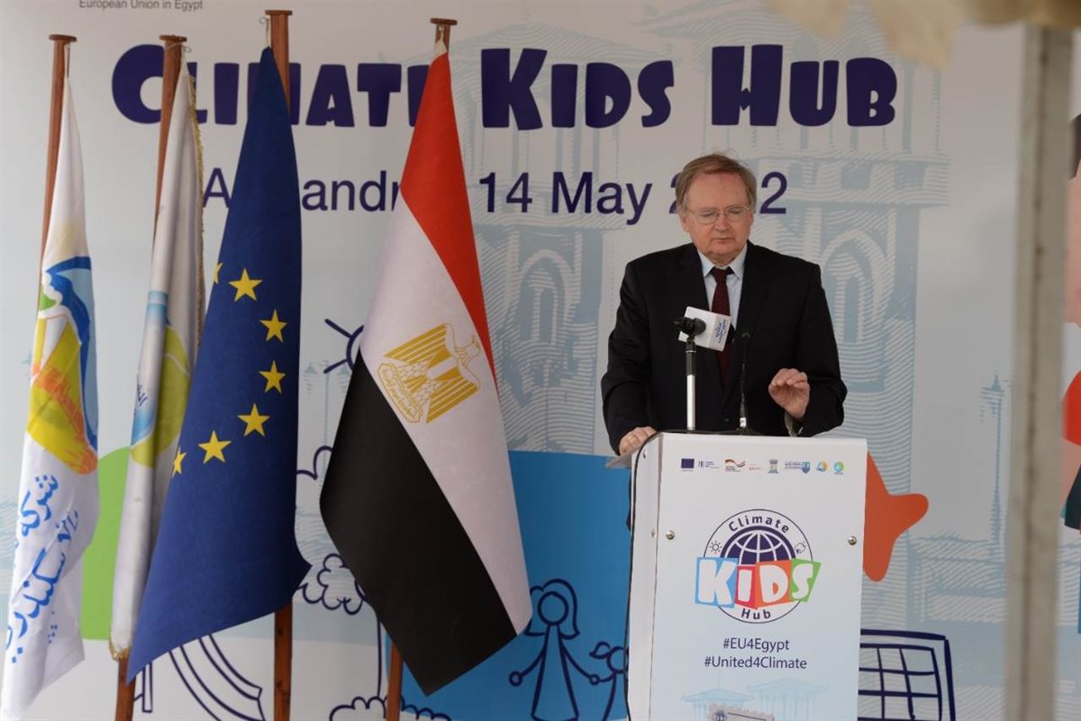 وأكد السفير كريستيان برجر، رئيس وفد الاتحاد الأوروبي بجمهورية مصر العربية، إن من المهم زيادة الوعي الخاص بقضايا المناخ وندرة المياه وخاصة عند الأطفال، مشيرًا إلى تمويل الاتحاد الأوروبي عدة مشروعات في الإسكندرية تساعد في ذلك منها تطوير خط الترام، وزيارة محطة تنقية المياه والصرف الصحي والتي تضمن عدم تلوث مياه الصرف الصحي، بالإضافة إلى حملات لتنظيف الشواطئ والتوعية بخطر البلاستيك.