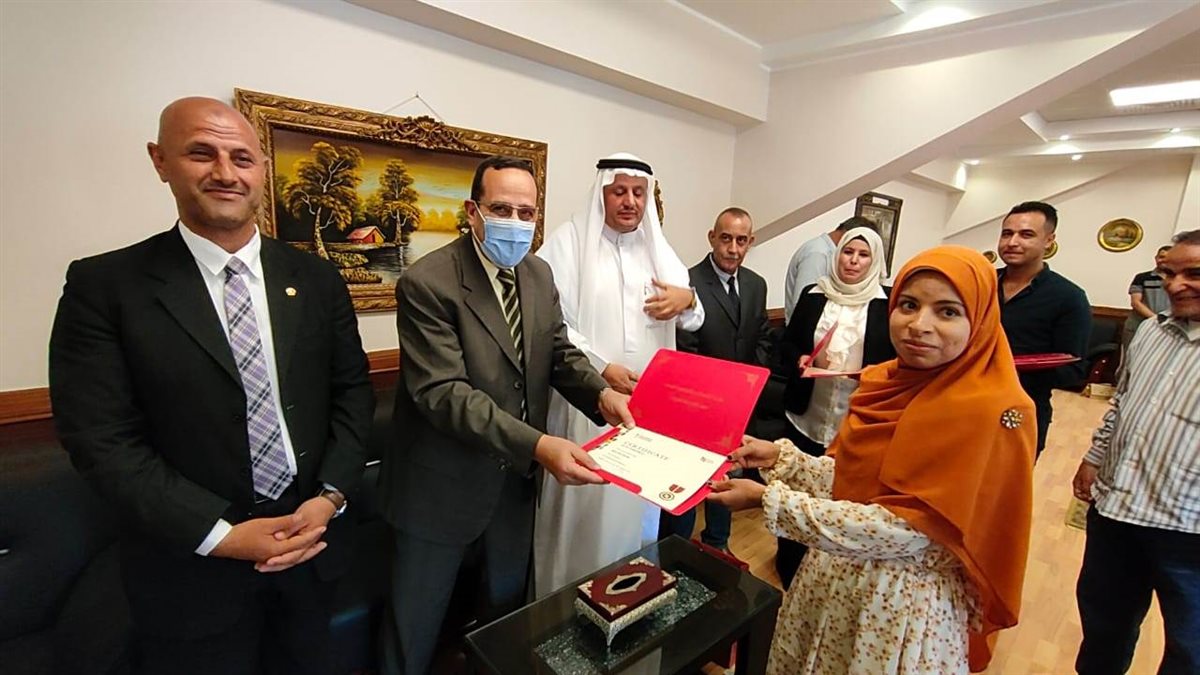 هذا.. وقد كرم المحافظ الخريجين والخريجات بتوزيع شهادات التخرج عليهم من الصالة المغطاة للألعاب الرياضية بالعريش .