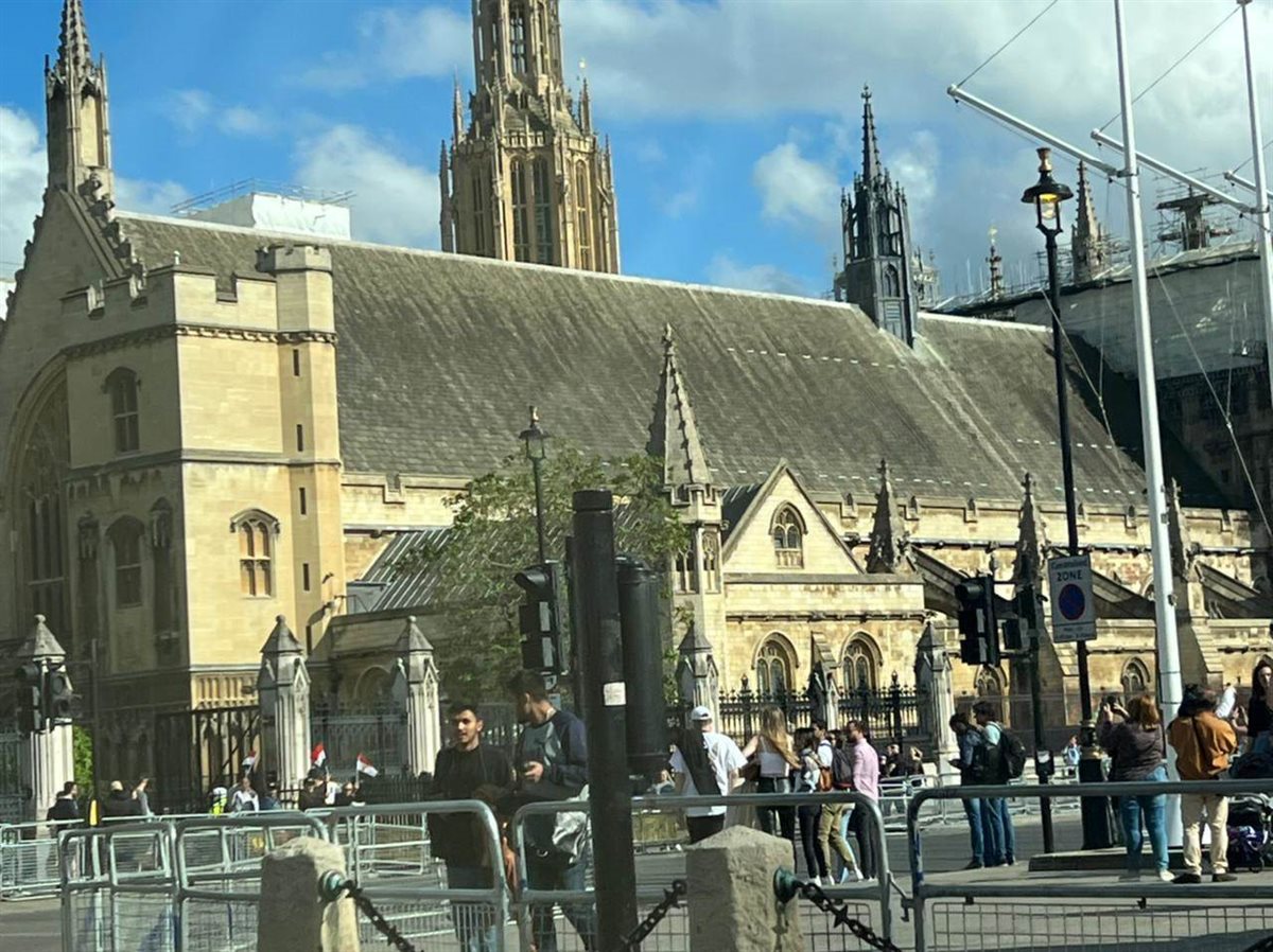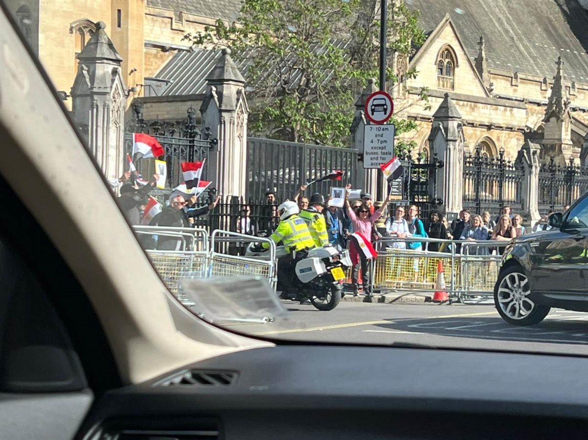 الجالية المصرية في لندن تحتفي بمفتي الجمهورية أمام مبنى البرلمان البريطاني