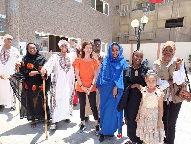 وتفقد أعضاء السفارة برفقة منال جمال وجيهان رشوان مدير عام تدريب الشباب، قاعات التدريب التي يتم تنفيذ البرنامج بمكونيه “تنمية المهارات ـ والمشورة المهنية”، كما شاهدوا أيضاً تدريب لسفراء مشواري، وتفقدوا معرض المنتجات اليدوية داخل المركز، وشاهدوا عرضاً للفلكلور من الوافدين من دولة السودان.