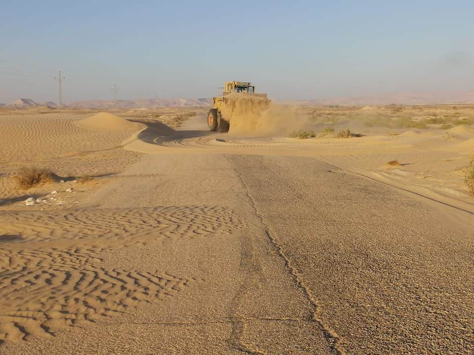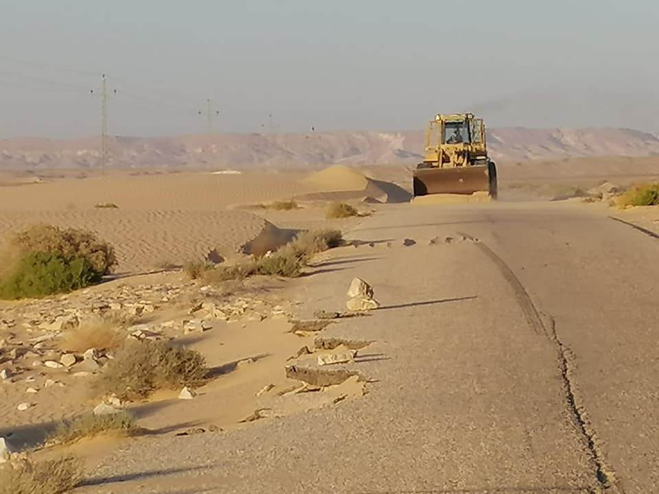تابع اليوم قطاع الطرق بالمتابعة المستمرة لحالة الطرق في نطاق المركز والمدينة، وذلك حرصا على سلامة وأرواح الجميع ولتفادى أية حوادث قد تحدث نتيجة تكوين الكثبان الرملية على الطرق.