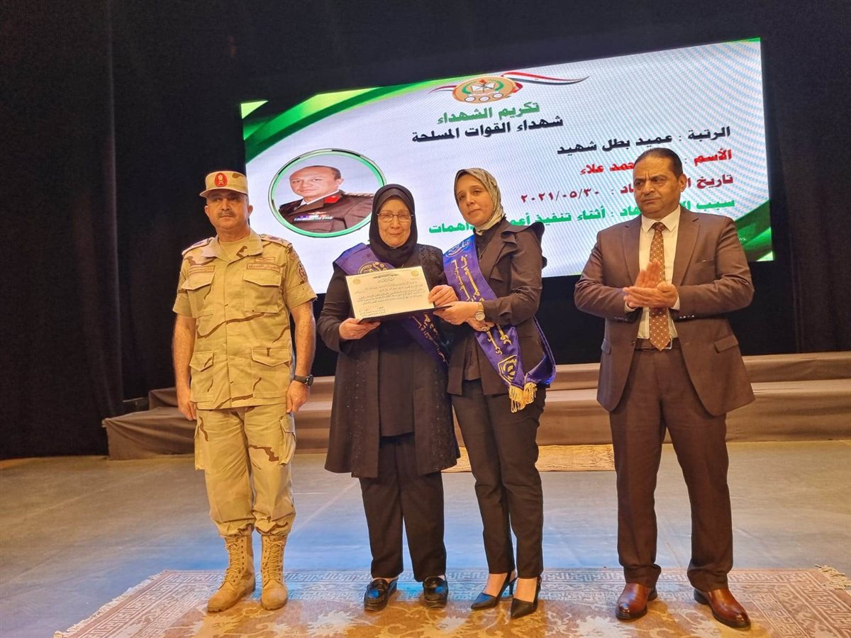 وفى نهاية الندوة تم تكريم أسر الشهداء وذوي الهمم من أبناء محافظة البحيرة، كما تم تبادل الدروع بين قائد قوات الدفاع الشعبي والعسكري و الجامعة.