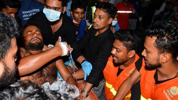 نقل الضحايا من الحرقى إلى المستشفى بعد اندلاع حريق مروع في مستودع حاويات داخلي في سيتاكوند، بالقرب من مدينة شيتاغونغ الساحلية، بنجلاديش ، 5 يونيو 2022.. بحسب ما أوردته وكالة "رويترز".