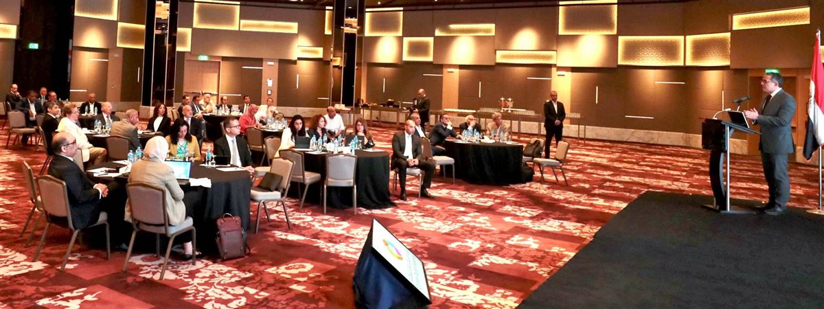 واختتم الوزير كلمته بأن الورشة اليوم ستشهد مناقشات موسعة، متمنياً أن تكون جلسة مثمرة وأن تخرج بتوصيات قوية وقابلة للتنفيذ على أرض الواقع من خبرات وعلم جميع الحاضرين مما يساهم في النهوض بقطاع السياحة المصري ولا سيما في هذا الوقت المثالي الذي يحظى بدعم غير مسبوق من قبل الدولة بأكملها لقطاع السياحة المصري، مشيرا إلى موافقة البنك المركزي المصري على إدراج أعمال رفع كفاءة خدمات الاتصالات وسرعة الإنترنت ضمن أغراض مبادرة تمويل عمليات الإحلال والتجديد اللازمة لفنادق الإقامة والفنادق العائمة وأساطيل النقل السياحي بسعر عائد 8 %متناقص.