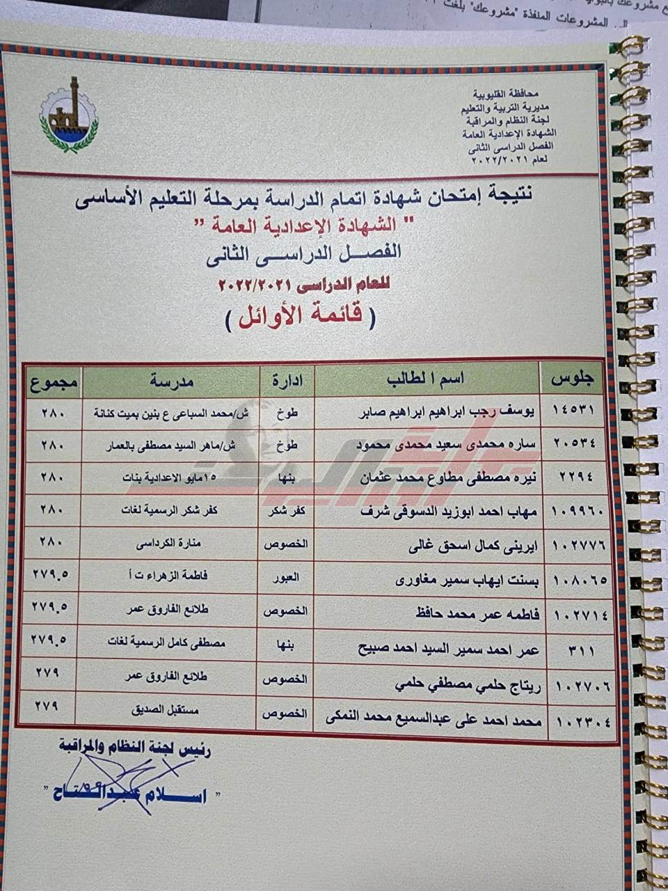 بنسبة نجاح 74.77 %.. محافظ القليوبية يعتمد نتيجة الشهادة الإعدادية