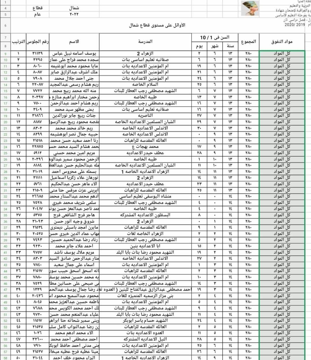 126 طالبا وطالبة أوائل الشهادة الإعدادية بالمنيا