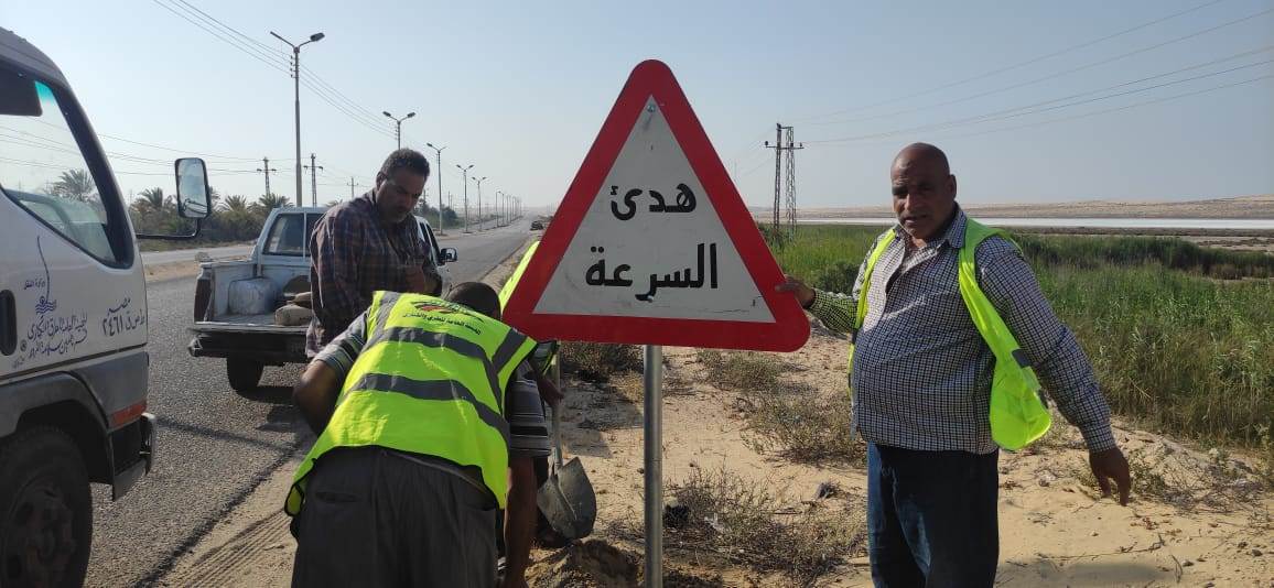 وأكد اللواء هشام الخولى نائب محافظ شمال سيناء، السعى الى الحفاظ على حياة المواطنين من خلال رفع كفاءة الطريق الدولى : "العريش / القنطرة شرق" للحد من الحوادث بانارة كشافات الكهرباء على جانبيه وإزالة الرمال من على الطريق وإزالة أية عوائق، وتزويده بلوحات إرشادية .. الى جانب تشغيل الطريق في الاتجاهين وفتح الوصلات المغلقة.. مشيراً الى البدء الفعلى في تركيب اللوحات الارشادية وتزويد الطريق بها، وخاصة عند المنحنيات والتحويلات واخطار السائقين بأماكن المنحنيات والتحويلات المرورية والتهدئة .